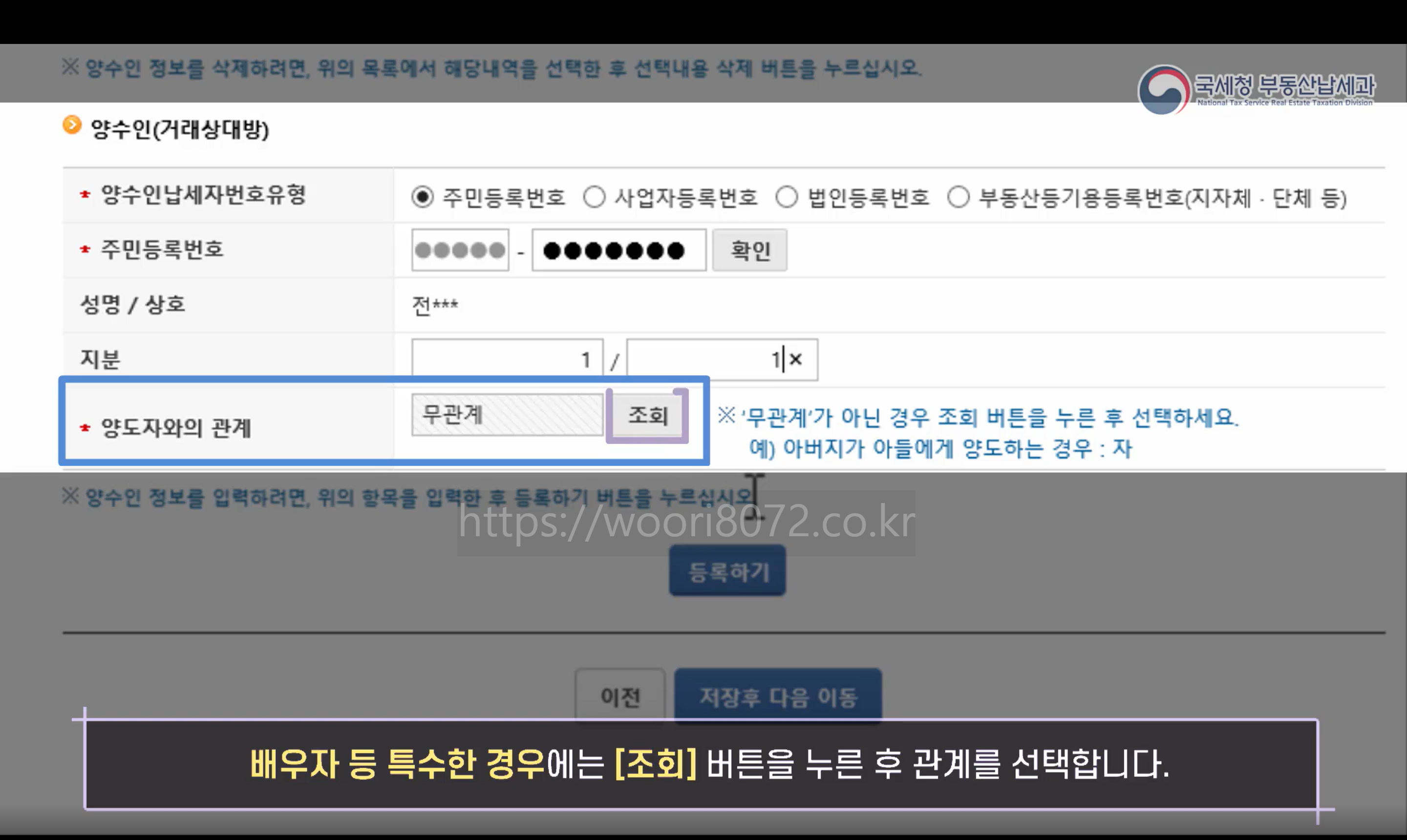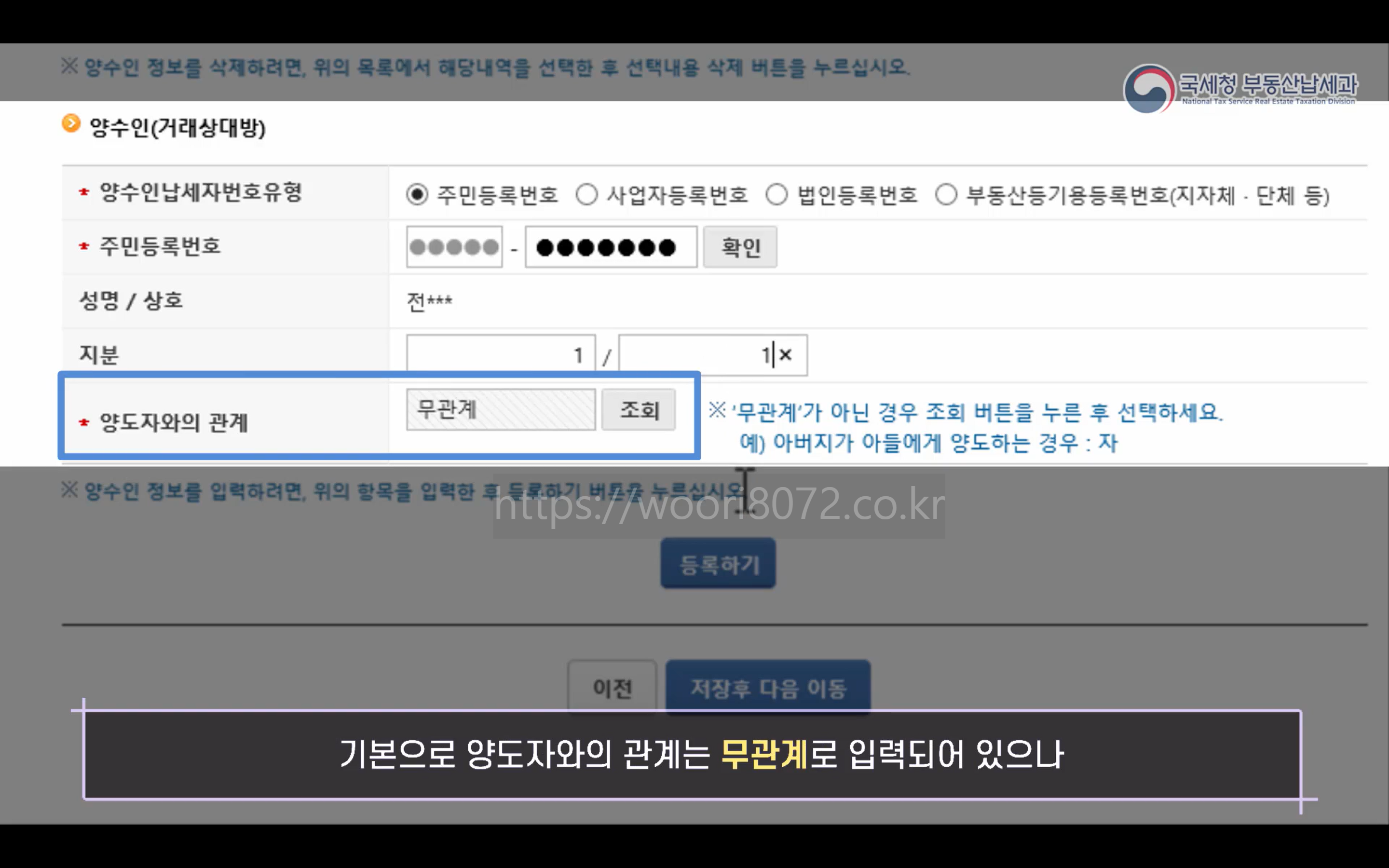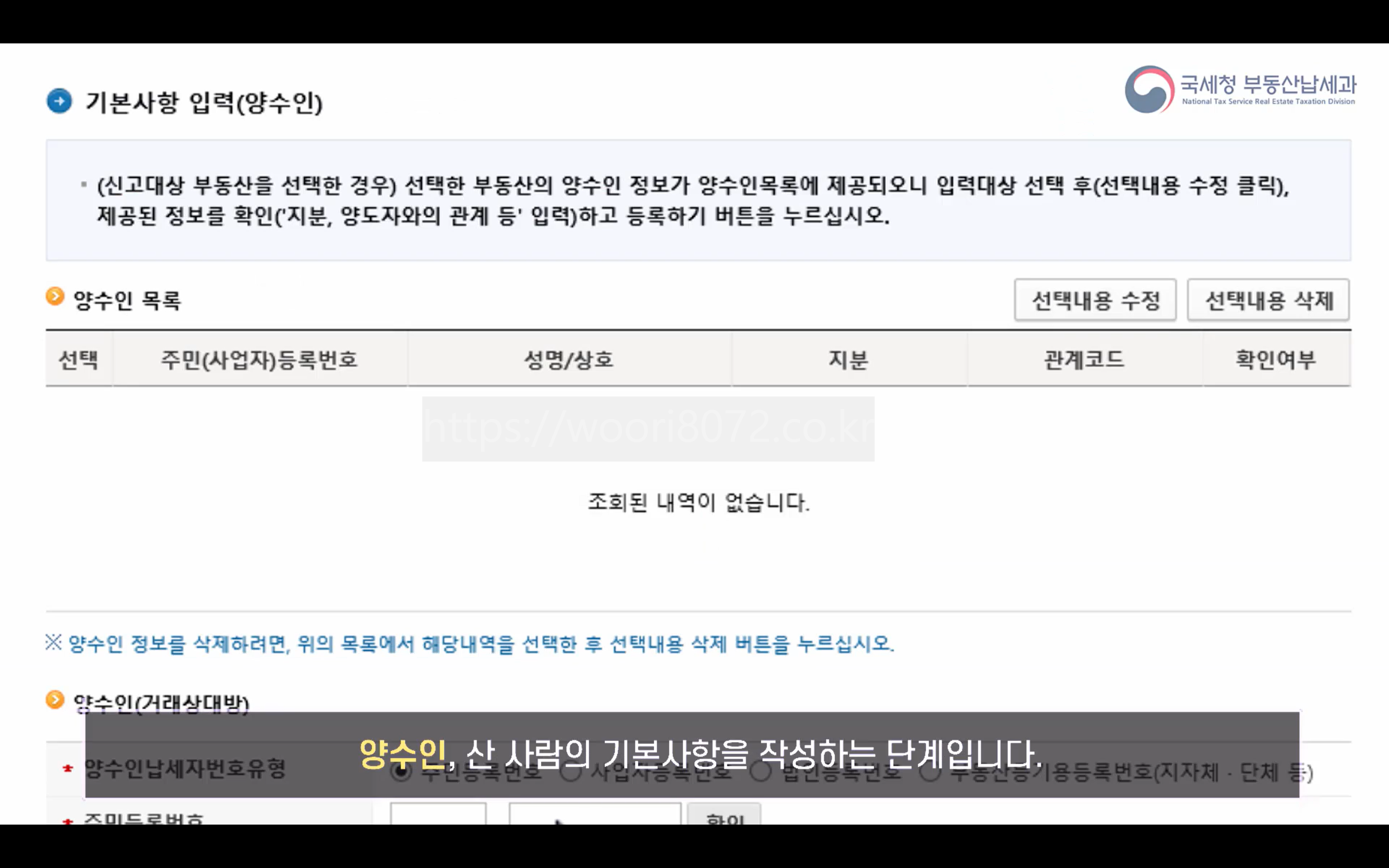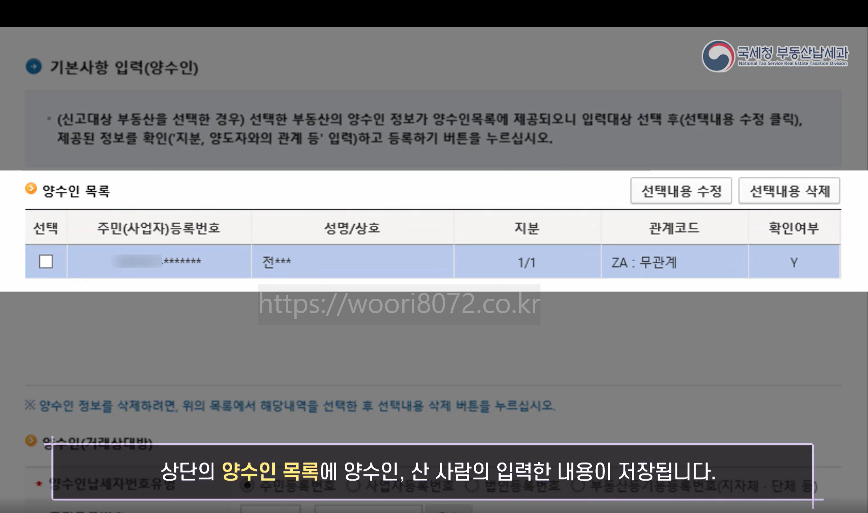 더 이상 등록할 양수인이 없으면 등록하기 버튼 클릭